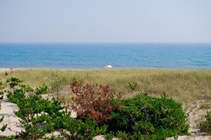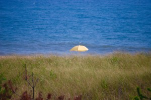 From our porch we spy that lonely umbrella. This year it’s blue.